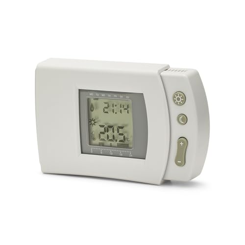 Digital Wall-Mounted Boiler Thermostat, Weekly Programming (7 Days, 24 Hours), Battery Powered, White