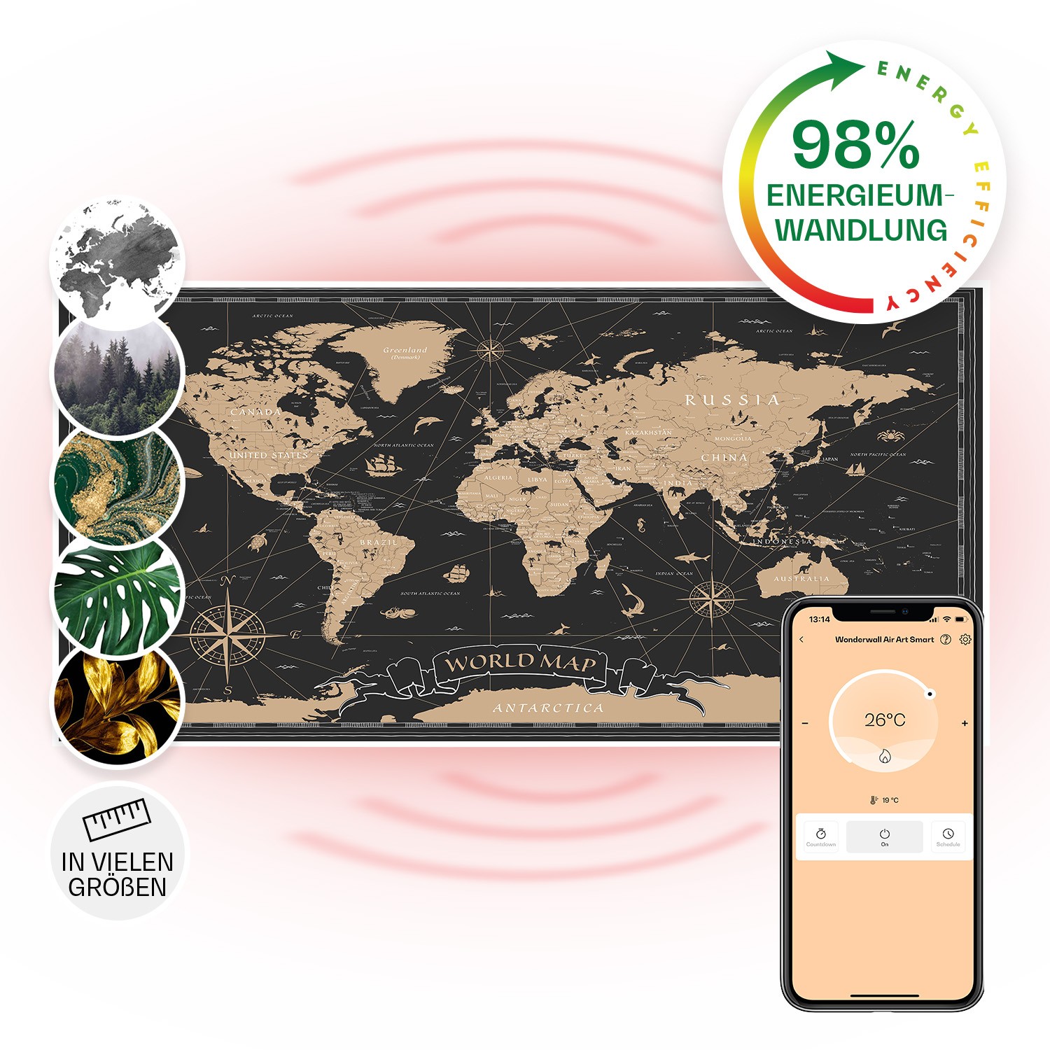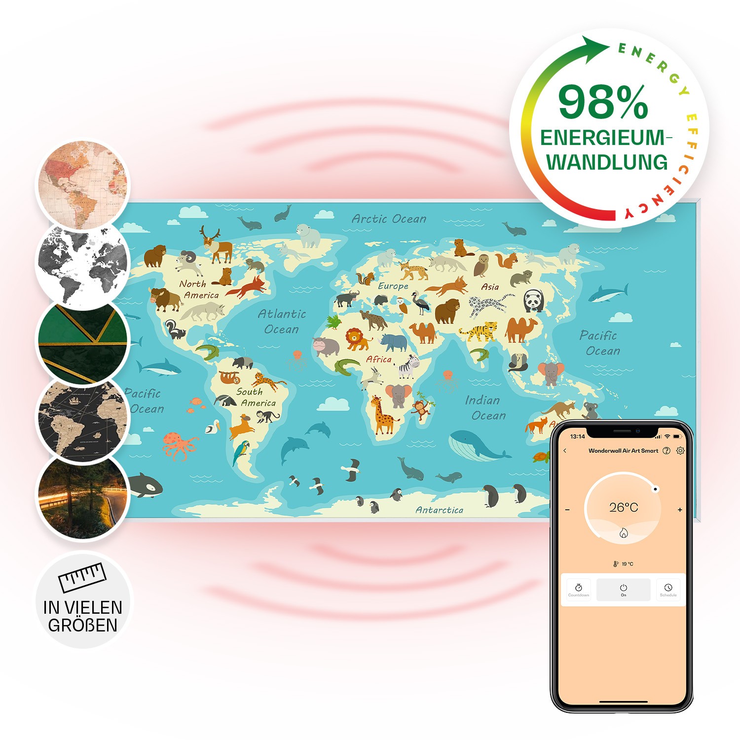 Heater Space Infrared Heating Panel Thermostat Wall Mount App 120x60 cm 700W Map