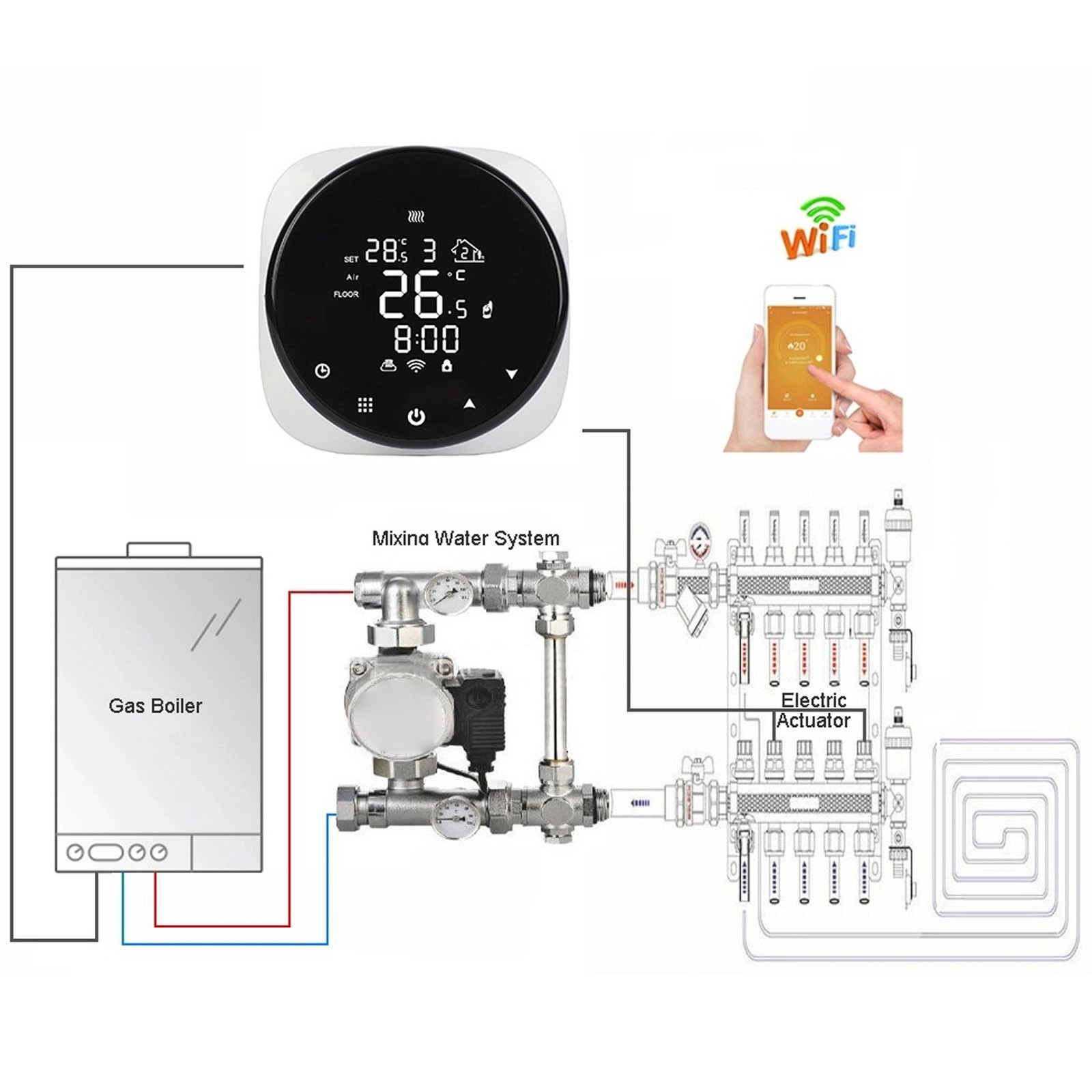 Heating Temperature Controller WiFi APP Control Wall Mount Thermostat For Boiler