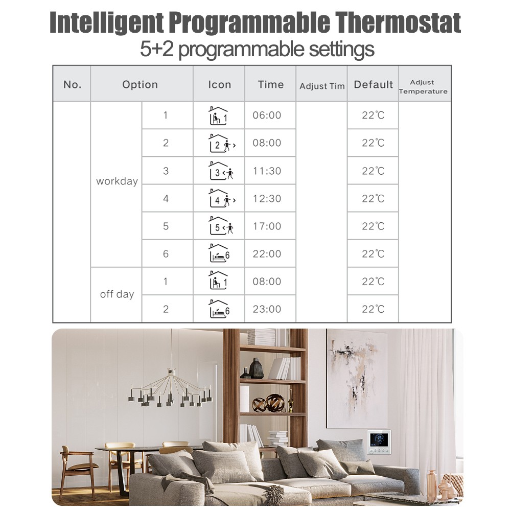 .Electronic Digital Thermostat With LCD Display Wall Mounted Smart Thermostat