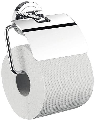 Emco Polo Toilet Roll Holder with Lid, Fine Curved Wall Mounted Toilet Roll Holder, Metal Toilet Roll Holder, Chrome