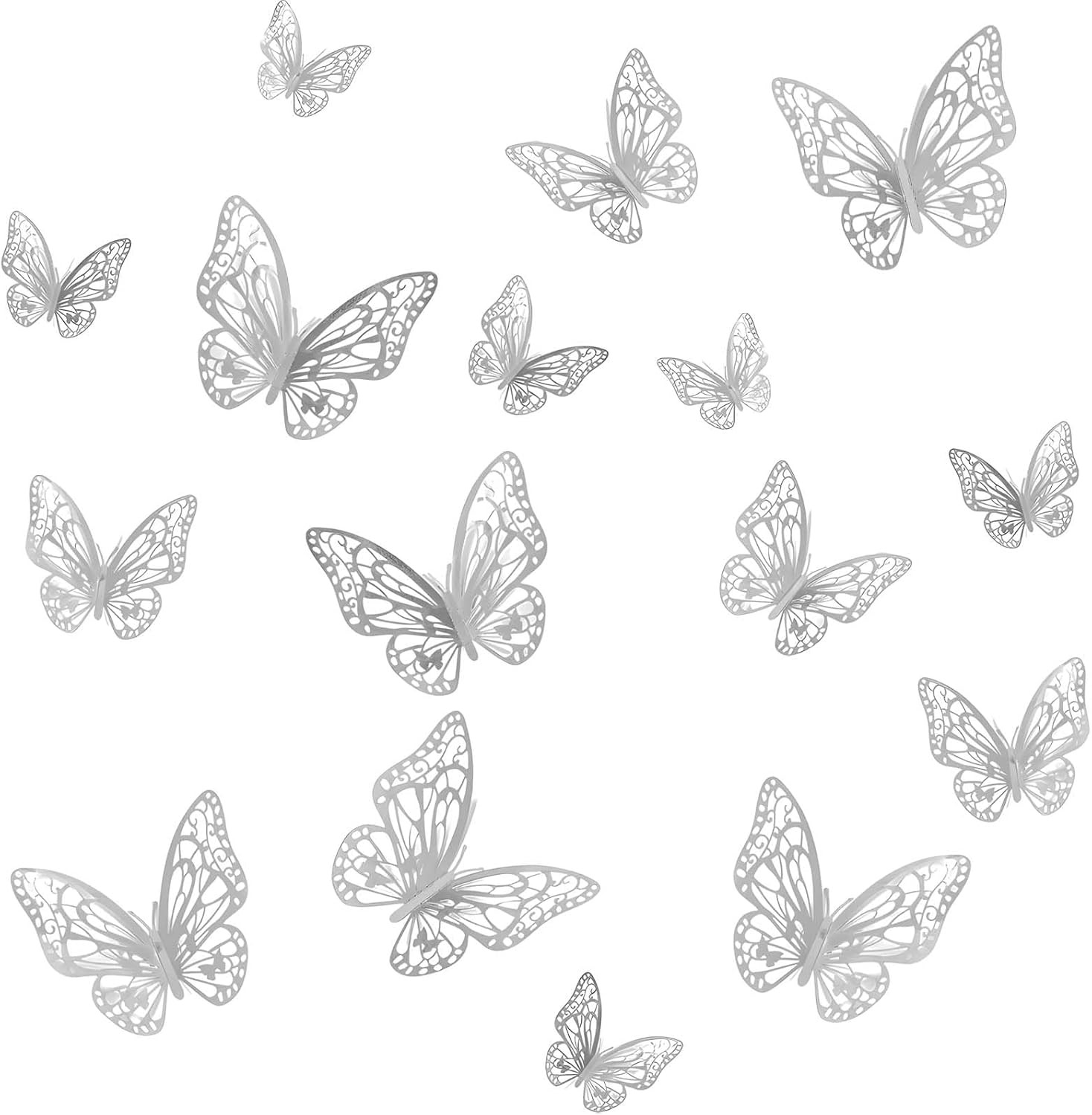 Tianorcan 3D Butterfly Wall Stickers 24 PCS 2 Styles 3 Sizes DIY Stickers, Butterfly Decorations Removable Wall Stickers for Home Room Decor (Silver)