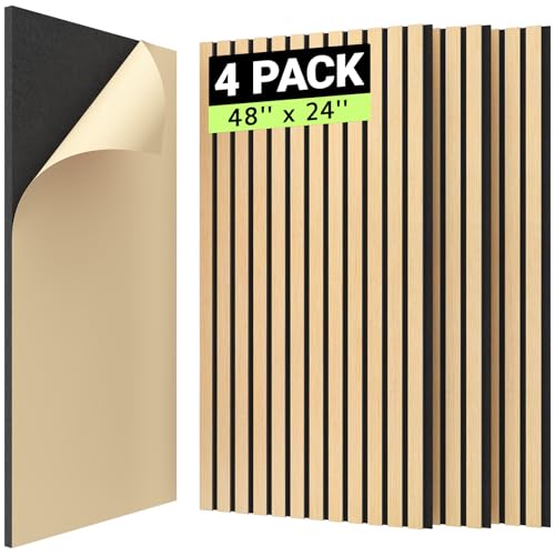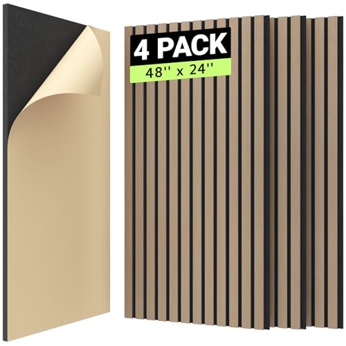 TONOR 4 PCS Wood Slat Panels, 48" x 24" x 0.83" Acoustic Panels for Wall, Decorative 3D Slat Panels for Sound Absorbing, Soundproof Panels for Living Room, Studio, Recording Room, Burly Wood