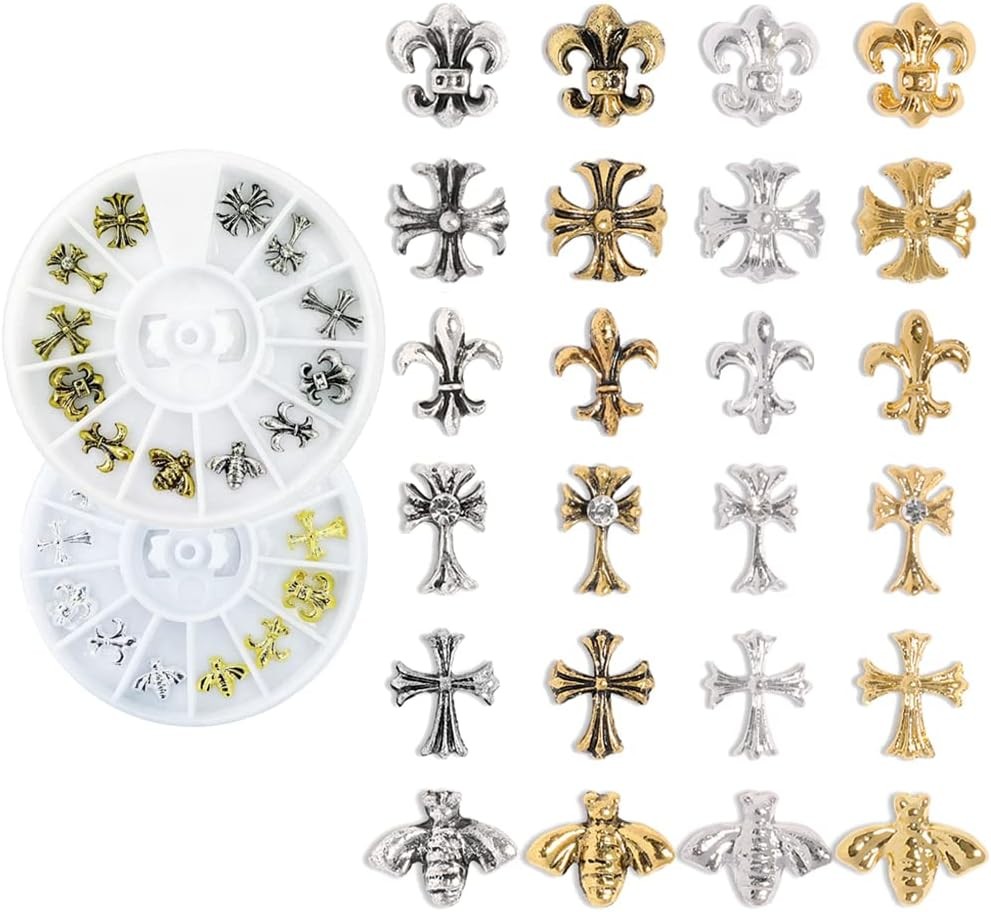 3D Nail Charms, 24 Pcs Shiny Nail Rhinestones Gems Heart Cross Nail Art Charms