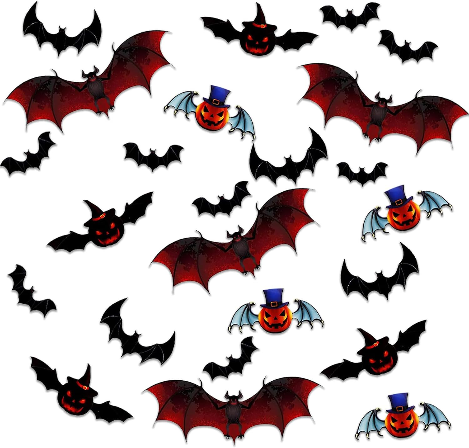 24 Pcs Halloween Bats,3D Halloween Decorations Wall Stickers,Black Red PVC Pumpk