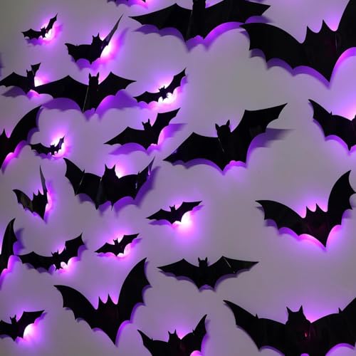 boocooberg 24pcs Halloween Decorations Indoor Lights,Led 3D Bats Lights Indoor Wall Decor,Halloween Party,Bedroom Window Decorations,Indoor And Outdoor Home Decals (24)