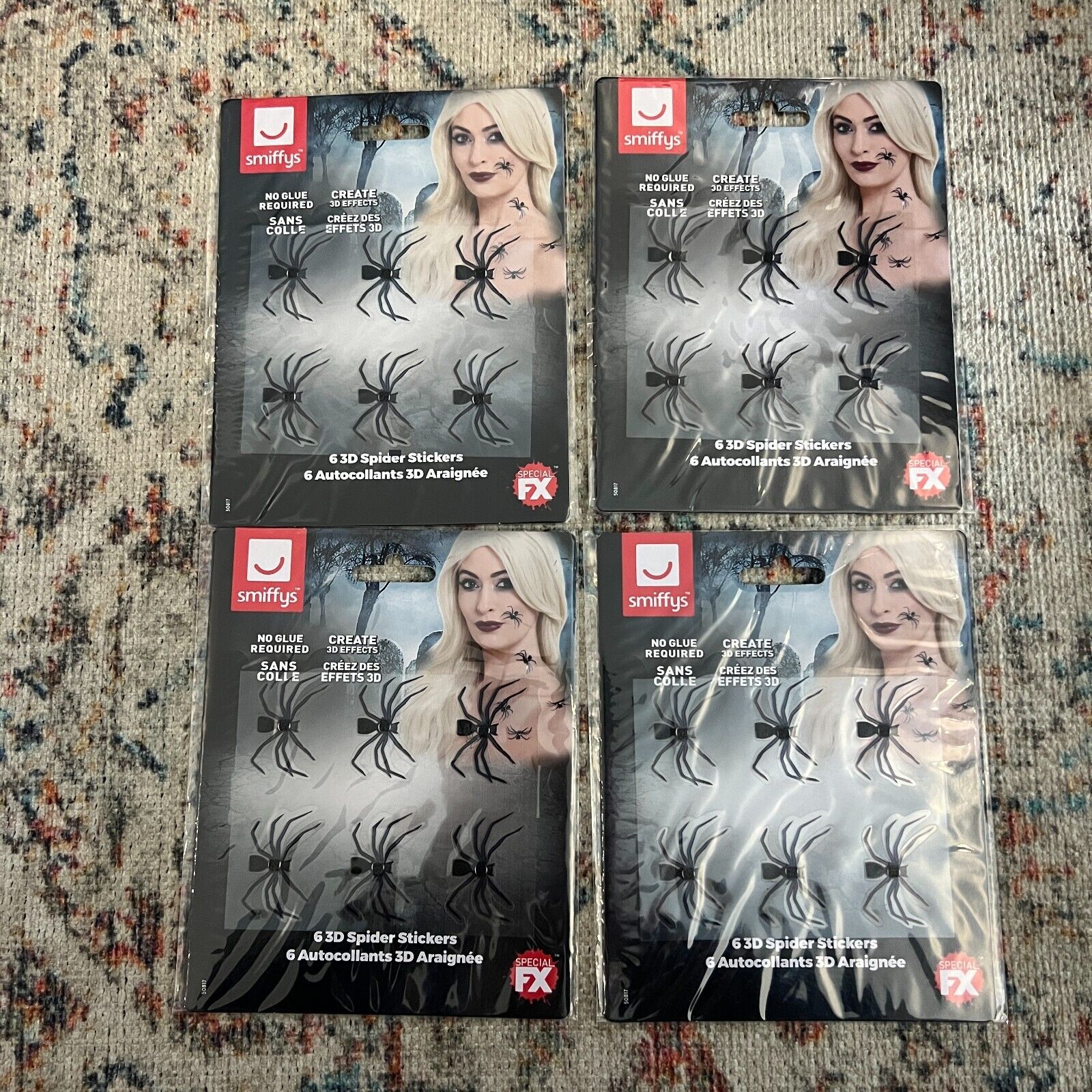Smiffys Make-Up FX 3D Spider Stickers Halloween Fancy Dress Accessory X4 24 PCS