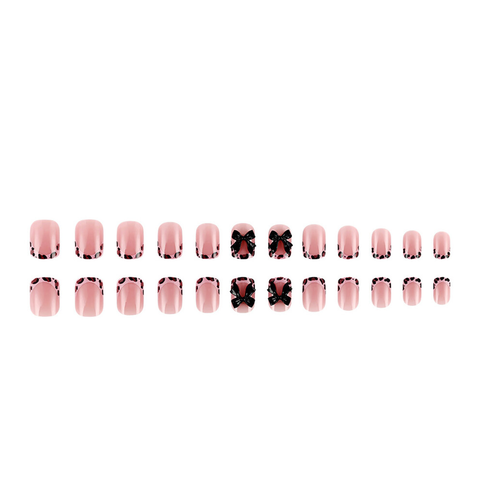 24 Pcs 3D Bows Artificial Nail Leopard Print French False Nail