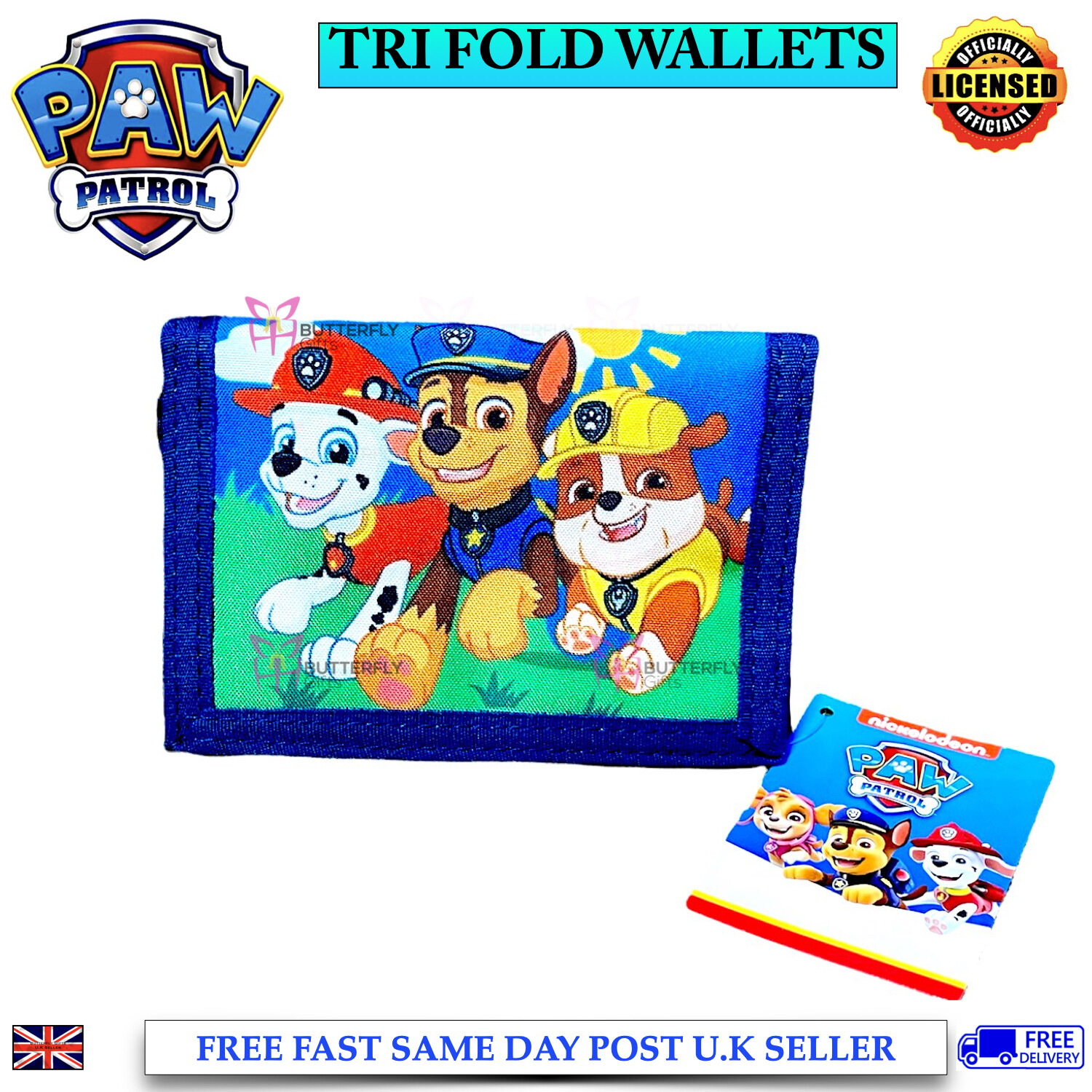 Kids Paw Patrol Paw Skye Wallet Play Patrol Card & Coin Tri Fold Design