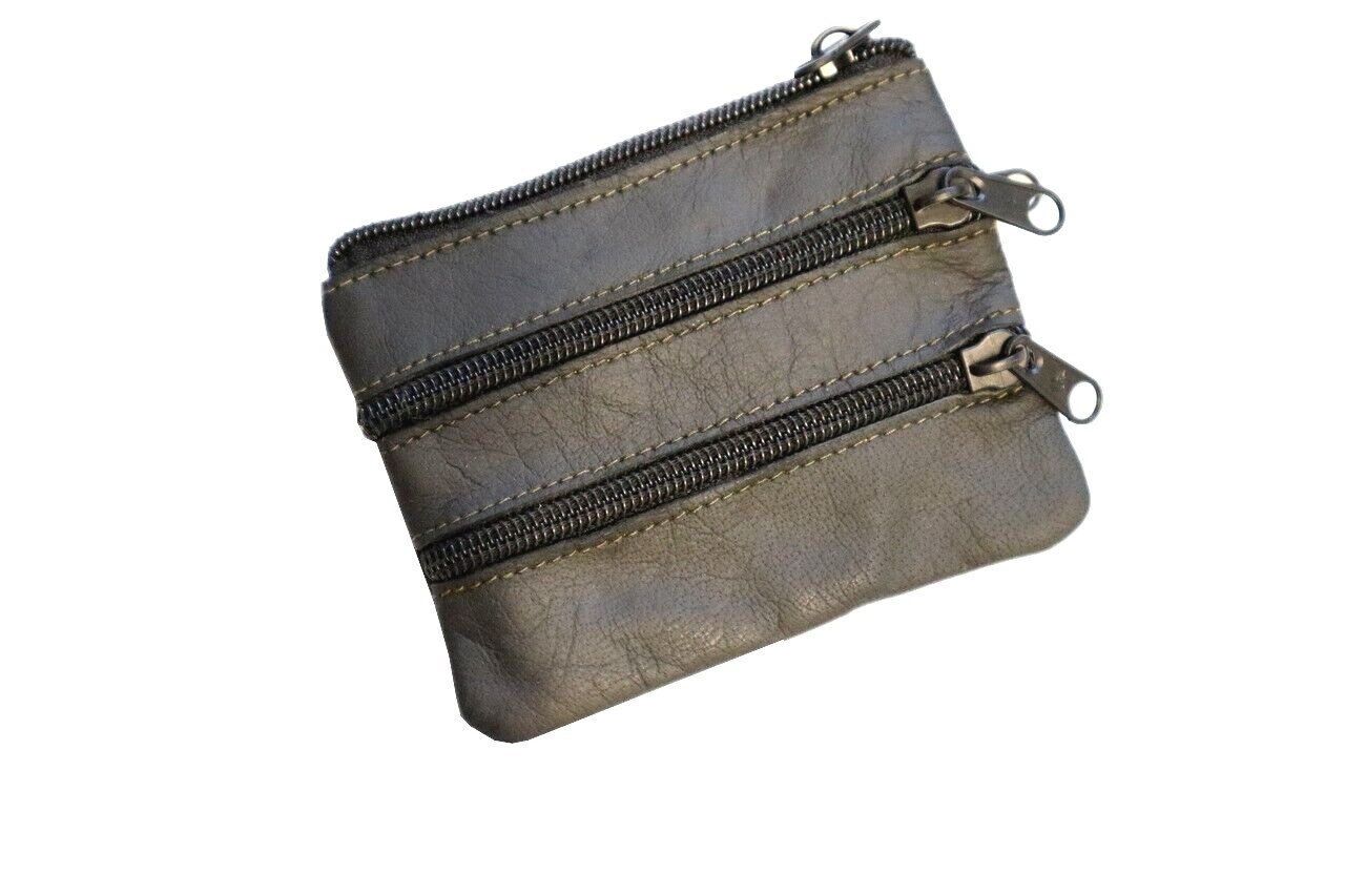 Small Coin Pouch Purse Key Holder Leather Zip Wallet Card Holder Unisex Black
