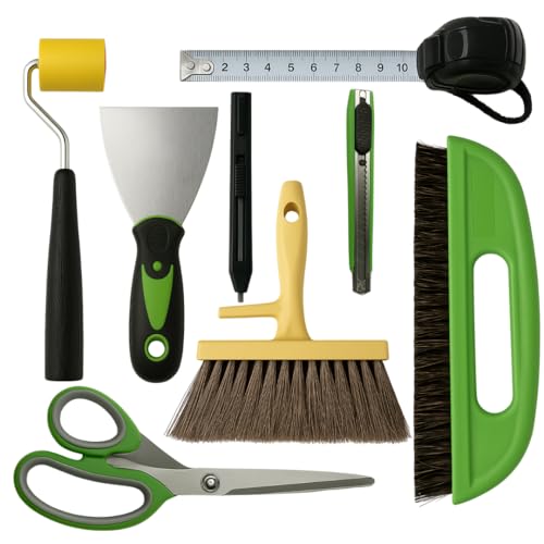 Tsekouri Wallpaper Paste Kit - Set Includes 8 Piece Wallpaper Kit Containing Wallpaper Paste Brush and Smoother, Wallpaper Seam Roller, Wall Paper Scraper Tool & Measuring Tape
