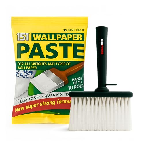 Wallpaper Paste & Brush, Strong Adhesive for Easy Wallpaper Hanging & Decorating, DIY & Professional Kit for Smooth, Textured & Lined Walls, 200g (12 Pints)