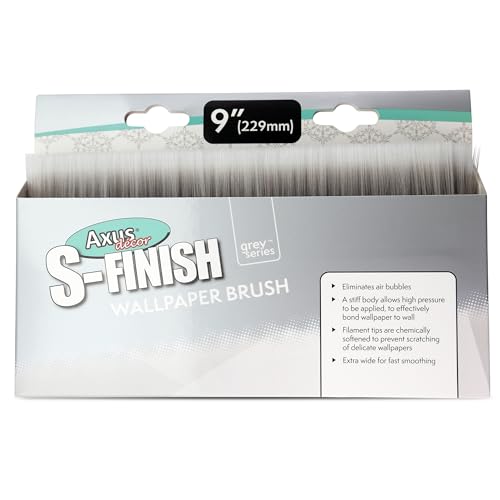 Axus Decor Immaculate S-Finish Wallpaper Brush, 9 Inch - Paperhanging Brush With Animal Hair Free Bristles & Ergonomic Handle - Ideal for Delicate Wallpapers and Wall Coverings, Eliminated Air Bubbles