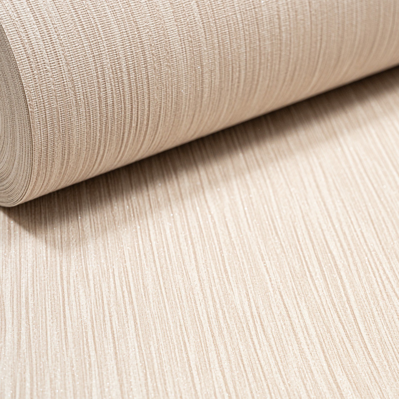 Light Brown Stripe Glitter Wallpaper Cream Shimmer Textured Vinyl Free Match