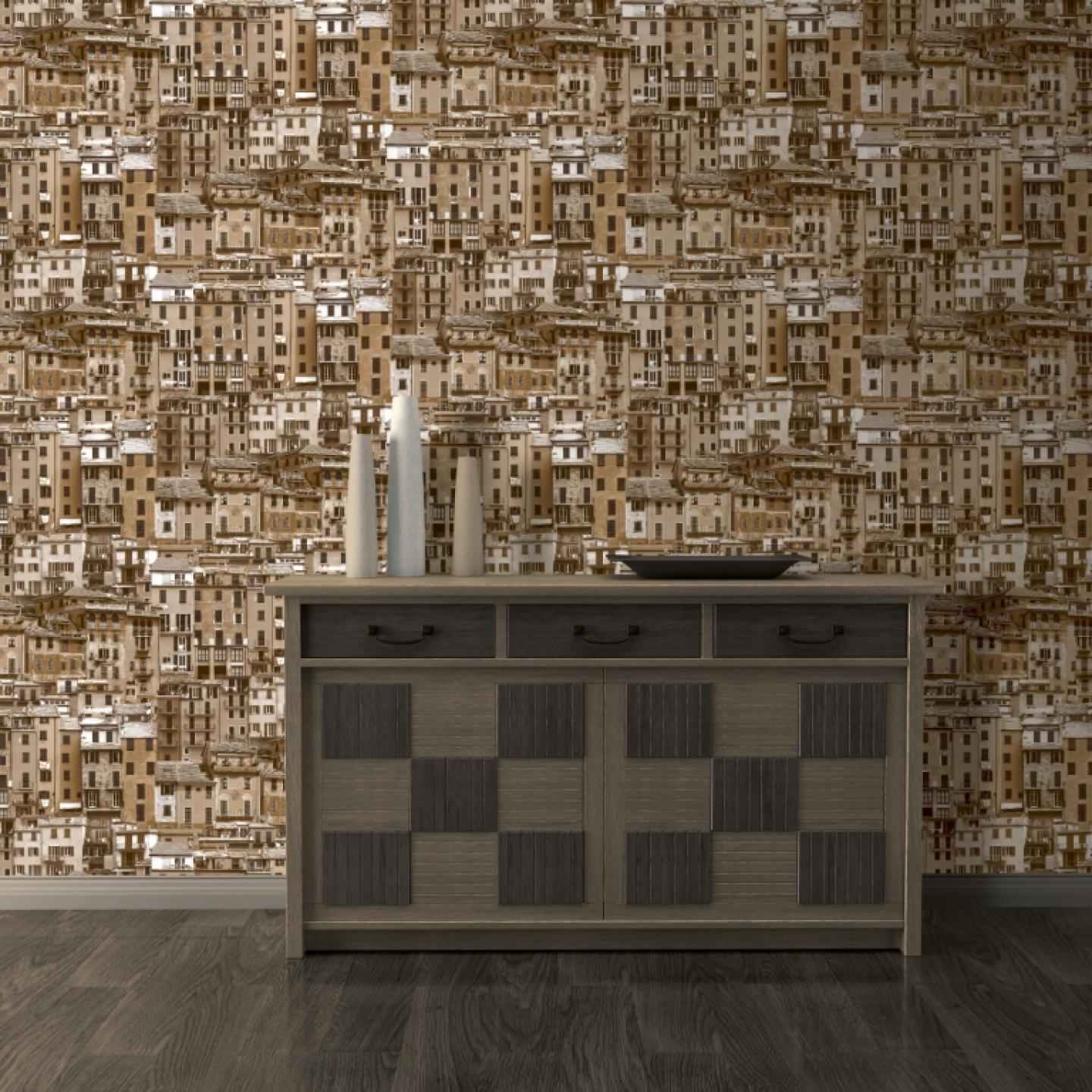 UGEPA FOR YOUR HOME VILLAGE BEIGE CREAM FEATURE DESIGNER VINYL WALLPAPER J70707