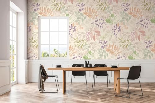 A.S. Création Flower Wallpaper in Cream, Green, Purple, Brown, Pink - High-Quality Non-Woven Wallpaper Floral 396931 - Design Wallpaper Painted to 10.05 m x 0.53 m - Made in Germany