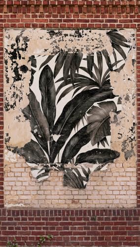 Livingwalls Non-Woven Wallpaper - Brick Wallpaper Palm Leaves in Beige, Red and Cream - Wall Wallpaper for Various Rooms - XXL Wall Picture 2.80 m x 1.59 m