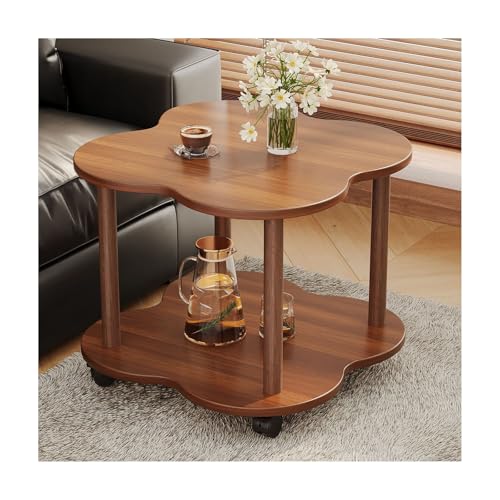 BSKJMMP Coffee Tables with Storage 2-Tier Walnut Wood Sofa Side Table End with Wheels Easy Assembly for Living Room Home Cafe Kitchen 15.7X 15.7X 18.9 Inches