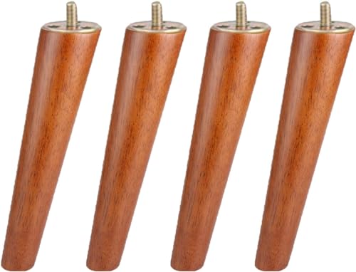 ISolay Furniture Legs, Wooden Furniture Legs with M10 Screws Non-Slip Mat and Mounting Plate for, Sofa Bed Table Armchair Nightstand Wardrobe, Walnut Color 4 Pieces (20cm)
