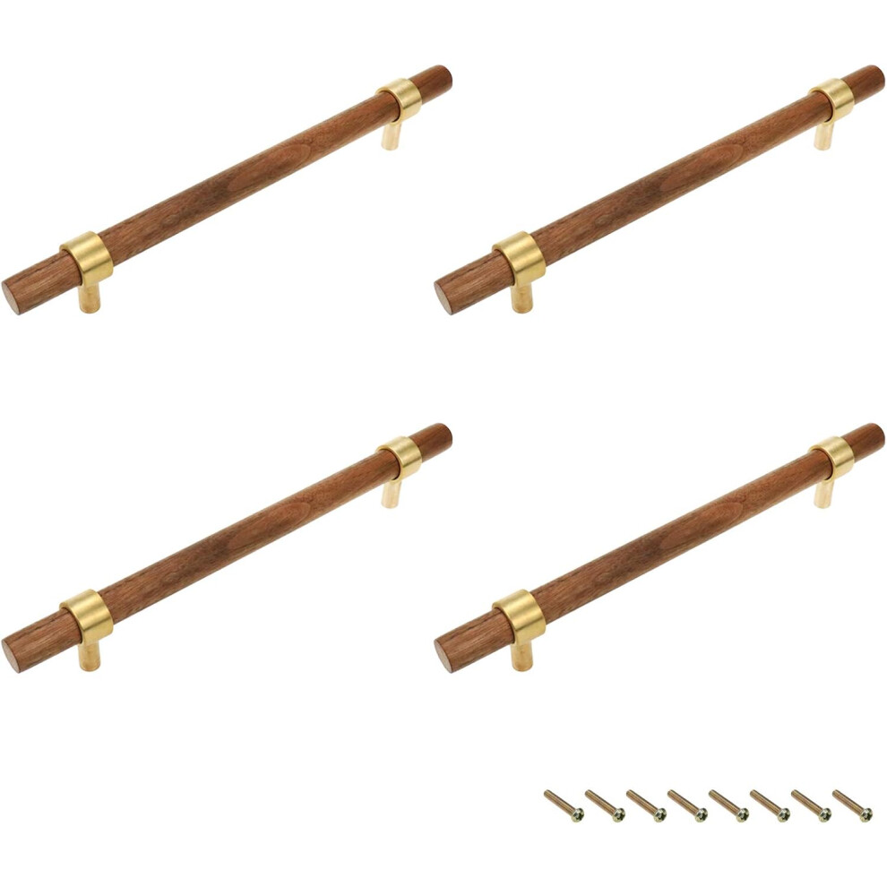 Drawer 8.66"/220mm Pulls Brass Walnut Kitchen Wardrobe Cabinet Hardware Pull Handle Adjustable Hole Distance with Screw, 4Pcs