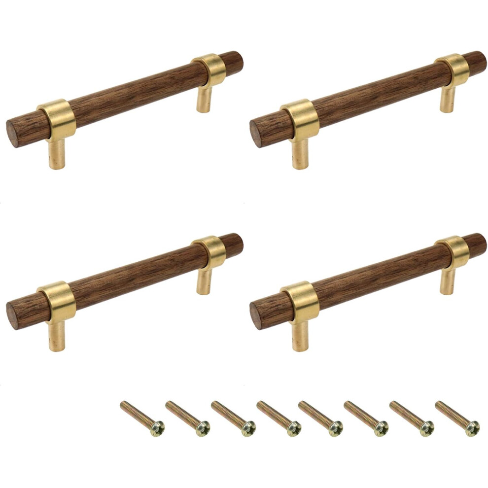 Drawer 5.51"/140mm Pulls Brass Walnut Kitchen Wardrobe Cabinet Hardware Pull Handle Adjustable Hole Distance with Screw, 4Pcs