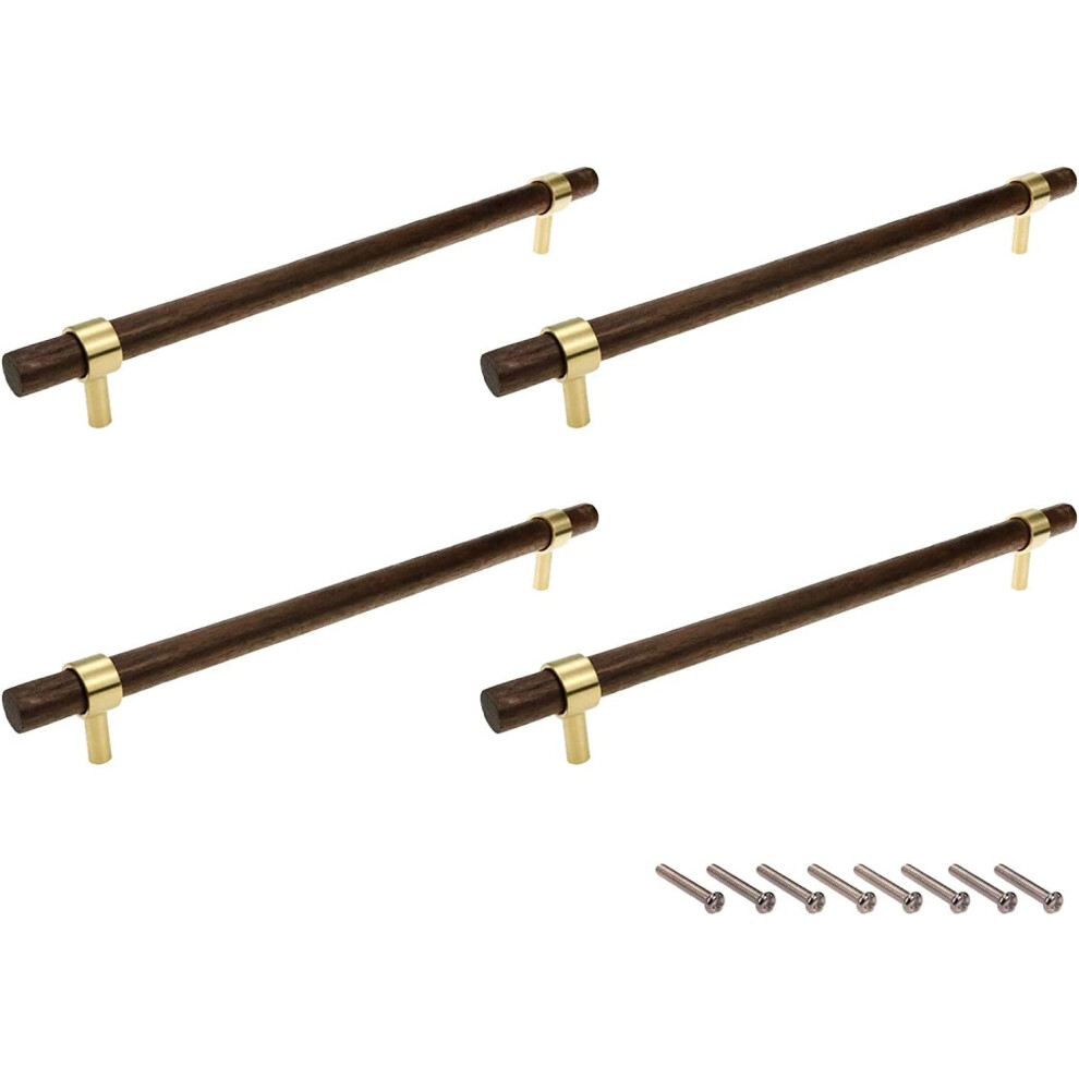 Drawer 11.02"/280mm Pulls Brass Walnut Kitchen Wardrobe Cabinet Hardware Pull Handle Adjustable Hole Distance with Screw, 4Pcs