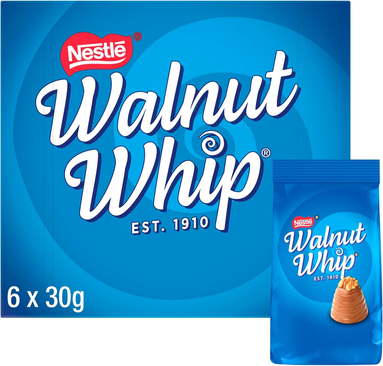 Walnut Whip Milk Chocolate Multipack, 10 Pack of 6 x 30 g (Total 60 Chocolates)