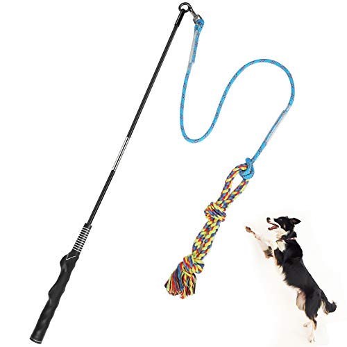 SAINUOD Flirt Pole for Dogs Interactive Dog Toys for Large Medium Small Dogs Chase and Tug of War, Dog Teaser Wand with Lure Chewing Toy for Outdoor Exercise & Training