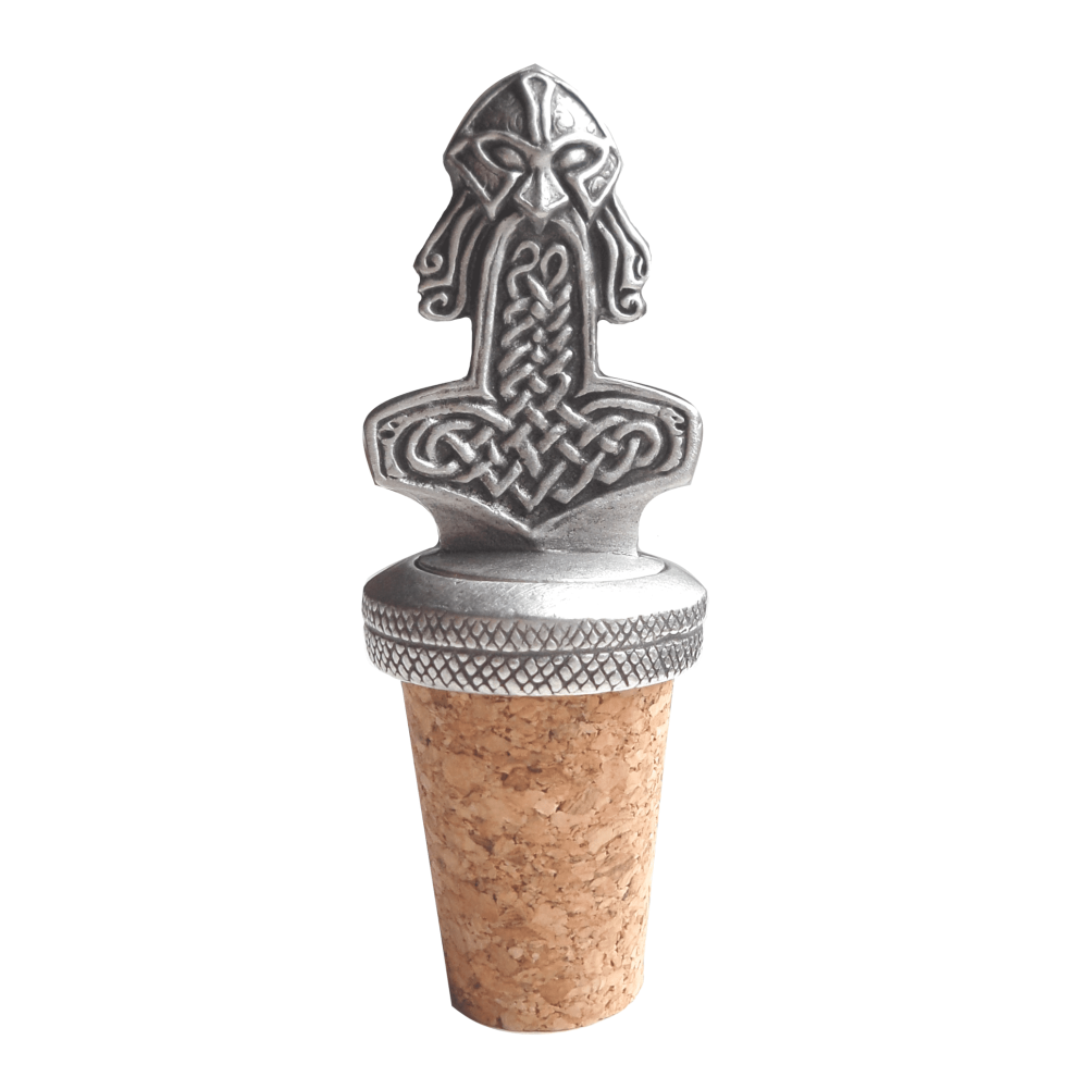 (No Gift Pouch) Thor's War Hammer Viking Pewter Bottle Stopper
