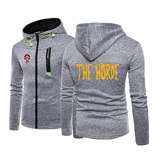 WIOSEN Men's Hoodie Jacket Sweater for Warcraft World Print Casual Fall Solid Color Warm Hooded Sweatshirt Zip Up Long Sleeve Cardigan Sportswear Outerwear,Grey-3XL