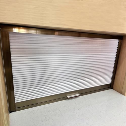 Vibeo Roll Up Cabinet Door with Guide Rails & Handle, Wide Tambour Door Kit for Wardrobe/Sideboard, Champagne Flexible Roll-up Door Foldable Accordion(90x90cm(35.4x35.4in))