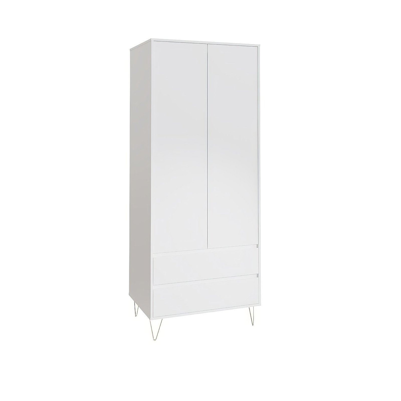 2 Door Wardrobe With 2 Drawers In White Modern Bedroom Furniture Gold Legs