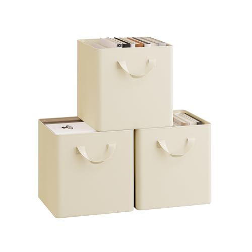 WOLTU Storage Boxes Set of 3, Storage Baskets, Folding Wardrobe Cube Boxes, with Handle and Metal Frame, for Living Room/Bedroom/Study, Linen, 26x26x26.5cm, Cream