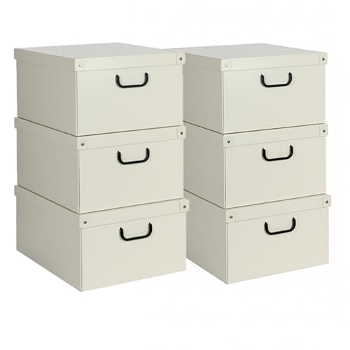 Lavatelli, Set of 6 Cardboard Wardrobe Organizer Boxes with Lids, for Clothes, Linen, Seasonal Change, with Handles, Sturdy and Decorative, Elegant Beige Storage Box, 39 x 50 x 24 cm, Large Size
