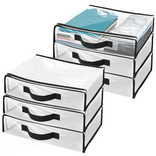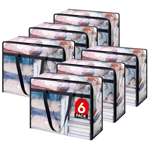 Clear Clothes Storage Bag with Zipper - 6Pcs Foldable Clothes Storage Boxes Wardrobe Storage Organizer Moving Bags with Reinforced Handle Packing Boxes for Moving House Cloth Bedding Duvet Toys