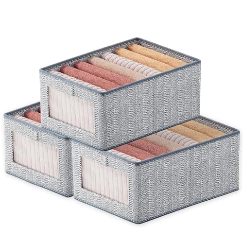 Goesort Set of 3 Clothes Storage Boxes, Wardrobe Storage Organiser Fabric Clothes Organiser, Storage Boxes with Clear Window For Jeans Pants Shirts Leggings Sweaters, Medium