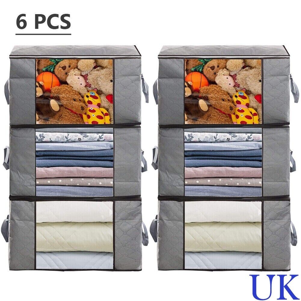 6Pcs Clothe Duvet Storage Bags Zipped Organizer Wardrobe Cube Closet Boxes 84L