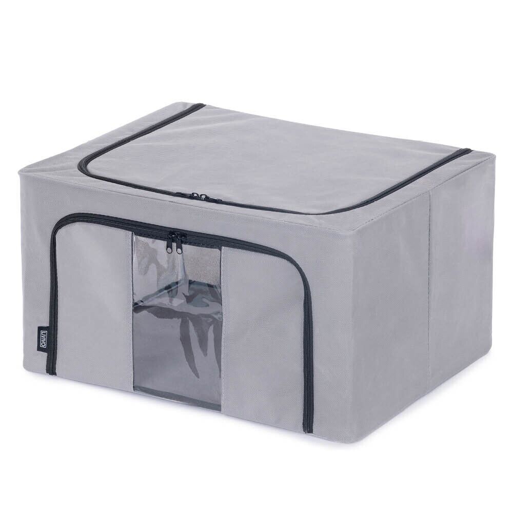 Cozary Storage Box with Lid - Wardrobe Boxes - Foldable Design, 29L Capacity, Linen Fabric, Foldable and Stackable, Ideal for Clothes and Accessories - Grey - 48 x 29 x 21 cm