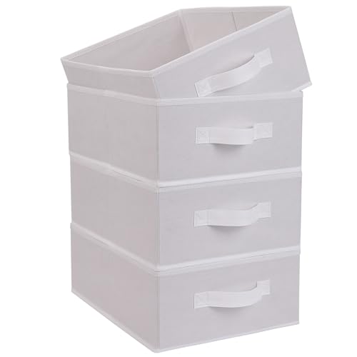 OVAKIA Fabric Storage Box, Foldable Wardrobe Clothes Organiser Boxes with Handle for Shelves Drawer Underwear Bras Socks Toys, Pack of 4 (White)