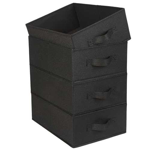 OVAKIA Fabric Storage Box, Foldable Wardrobe Clothes Organiser Boxes with Handle for Shelves Drawer Underwear Bras Socks Toys, Pack of 4 (Black)