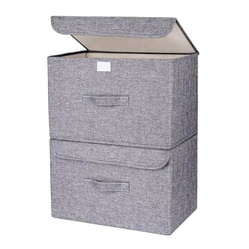 Homsorout Foldable Storage Box with Lid, Pack of 2, Wardrobe Organiser Boxes with Handle Large Linen Closet Organizer and Storage Bins for Shelves, Cupboard, Clothes, Toys, Grey