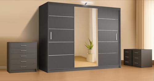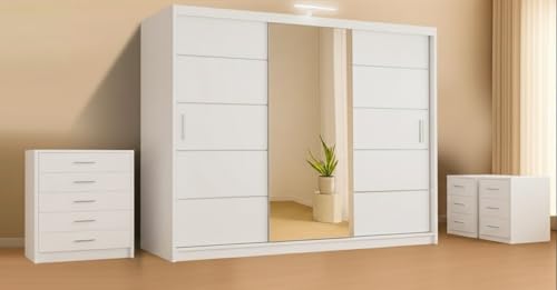 GSW Modern Bedroom Furniture Storage Set: Modular Wardrobe with LED, Chest of Drawers & Bedside Tables – Flexible Storage Solutions & Multiple Sizes (Wardrobe, Chest of Drawers, 250 cm)