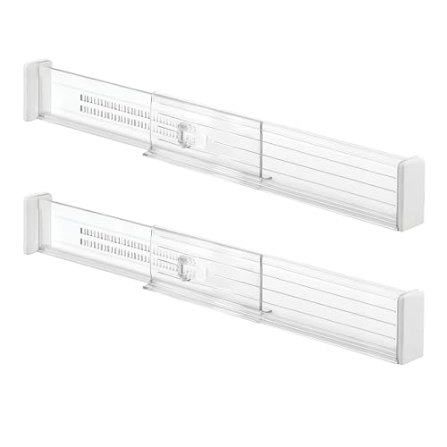 iDesign Plastic Drawer Dividers, Deep Adjustable Drawer Organiser System Made of Durable Plastic, Set of 2 Drawer Inserts for Wardrobe, Clear, 62420EU