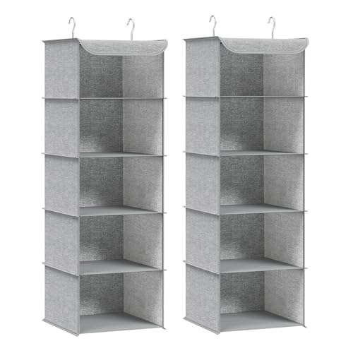 XFZJCHAP Hanging Wardrobe Storage Organisers, Set of 2, Hanging Storage Shelves, Foldable Wardrobe Clothes Organisers, Space-Saving, Metal Hooks, Inserts, Linen Pattern, Grey RCH005G02