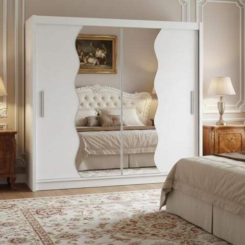 IE INTERIOR EMPORIUM Lyon Sliding Door Wardrobe – Multiple Sizes (120cm, 150cm, 180cm, 203cm, 250cm) with Mirror Sliding Doors and Ample Storage (White, 203cm)