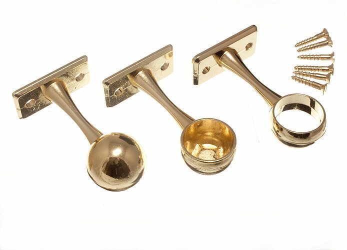 Merriway BH04414 (3 Pcs) EB Brass Plated Centre Wardrobe Rail Support KIt, 19 mm (3/4 inch) - Pack of 1 x Centre Support Bracket and 2 End Sockets