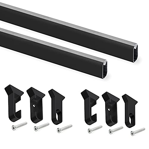 OXOLAMRIN Wardrobe Hanging Rail, Aluminium Triple Rail Sliding Glass Wardrobe Door Track Kit Black And Silver 100-300cm(Black,190cm/6.2ft)