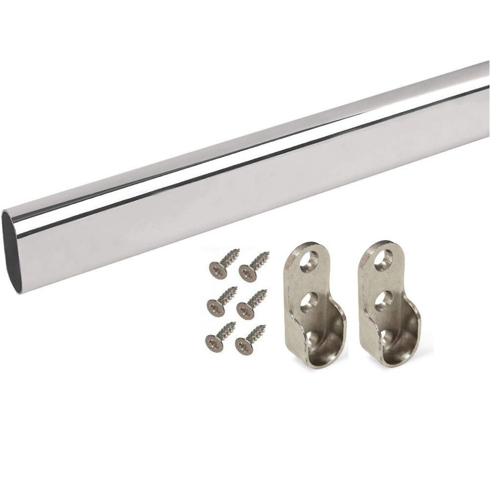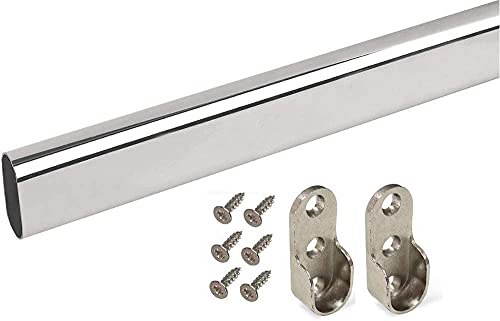 Merriway BH07435 Oval Wardrobe Rail Hanging Kit, Chromed 900mm Rail, 2 x Chromed End Supports, Complete with Screws