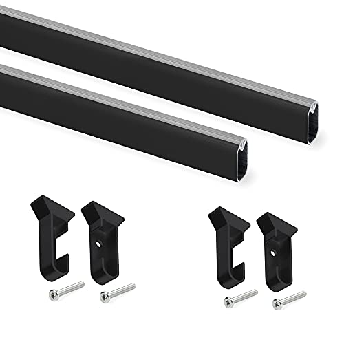 Emuca - Wardrobe hanging rail kit, 750 mm (29,5 inch), Black painted, Aluminium and Plastic, Pack of 2