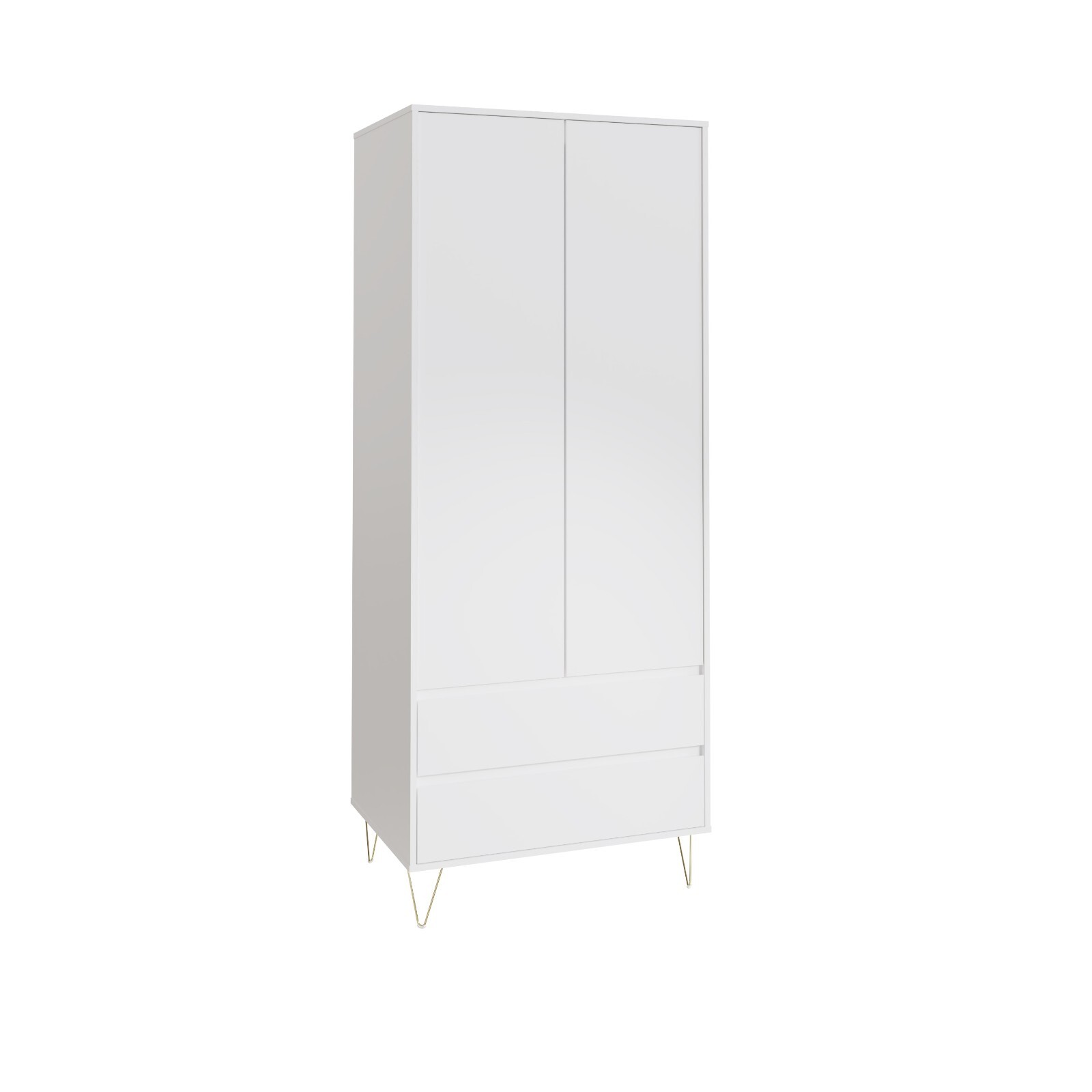 Panana 2 Door 2 Drawer Wardrobe with Hanging Rail Wooden Clothes Organizer Storage Cupboards Unit for Bedroom Furniture W 76.8 * D 50 * H 180cm (White)